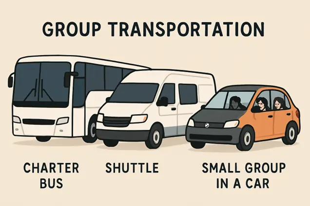 - Compare Options:Carefully evaluate the cost, comfort, flexibility, and reliability of each transportation method relative to your group size and trip details.
